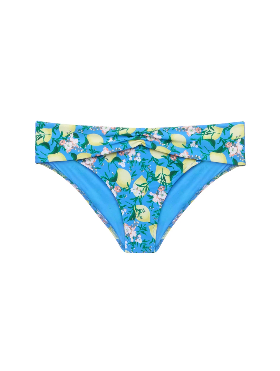 Inspiré de l’atmosphère irrésistible d’un été italien, ce bas de maillot de bain bleu Amalfi Twist présente un imprimé frais et vibrant ponctué de citrons et de fleurs. Avec sa coupe intemporelle qui sublime votre silhouette et conçu pour apporter le maximum de confort, ce modèle est rehaussé d’un drapé et de fronces à la taille pour une finition impeccable. Amusez-vous à le porter avec les soutiens-gorge de bain assortis pour composer d’élégants looks de vacances.