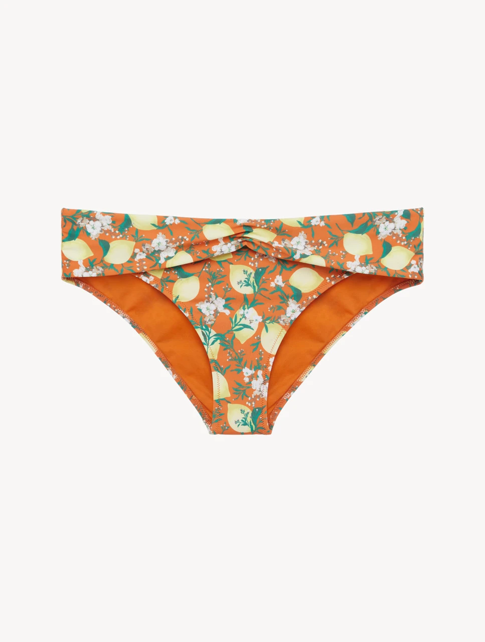 Inspiré de l’atmosphère irrésistible d’un été italien, ce bas de maillot de bain orange Amalfi Twist présente un imprimé frais et vibrant ponctué de citrons et de fleurs. Avec sa coupe intemporelle qui sublime votre silhouette et conçu pour apporter le maximum de confort, ce modèle est rehaussé d’un drapé et de fronces à la taille pour une finition impeccable. Amusez-vous à le porter avec les soutiens-gorge de bain assortis pour composer d’élégants looks de vacances.