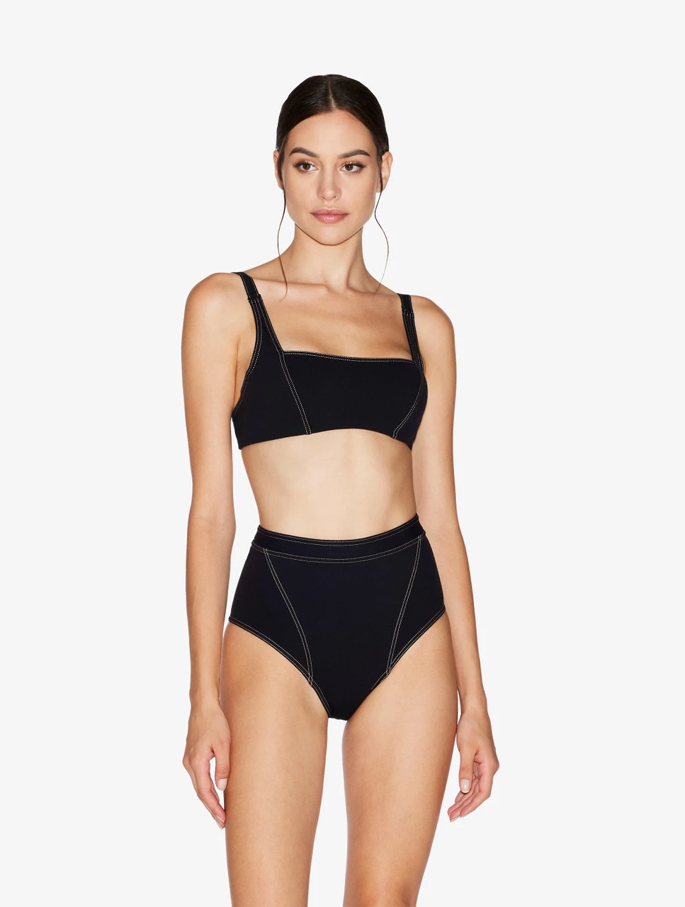 Associant des lignes impeccables et sophistiquées à des détails d’inspiration sportive, la collection When Summer Comes est conçue pour offrir un confort luxueux et sublimer votre silhouette afin que vous vous sentiez confiante à la plage comme à la piscine. Réalisé dans un superbe Lycra® stretch, ce bas de maillot de bain à taille haute de couleur noire présente une coupe intemporelle avec des insertions sculptantes sublimant la silhouette. Portez-le avec la brassière, le soutien-gorge de bain triangle ou bandeau coordonnés pour compléter le look.