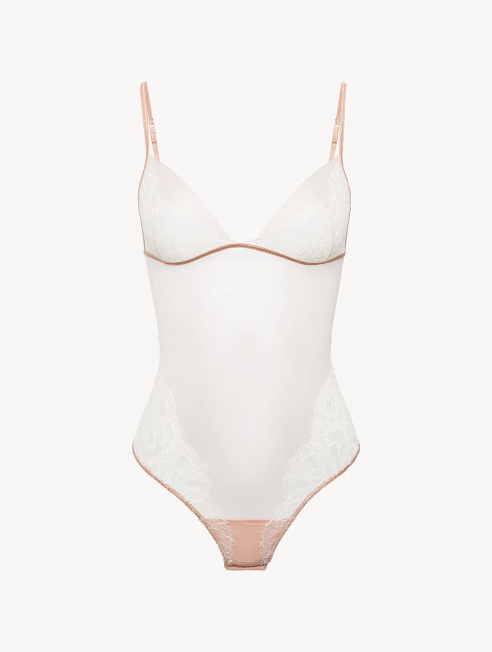 D’une beauté qui perdure, l’audacieuse collection Poesia est aussi versatile que séduisante. Combinant les sompteuses fleurs de sa dentelle Leavers qui caressent la peau de son toucher délicat et sensuel avec la légereté et la transparence de la tulle, ce body associe les teintes beige et rose nude dans un mélange saisissant méticuleusement confectionné à partir de tissus précieux upcyclées depuis notre atelier de Bologne. Créé à partir d’empiècements judicieusement placés pour épouser et célébrer les courbes du corps, ce body à été imaginé afin de sublimer la silhouette de la femme.