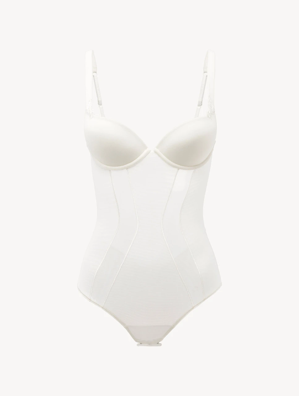 La collection «Maison Contouring» propose une alternative irrésistiblement confortable à la lingerie sculptante traditionnelle, comme ce body en doux tulle stretch, qui crée une silhouette d’un délicieux modelé sous n’importe quelle tenue. Ses bonnets ampliformes et ses armatures soutiennent et valorisent le galbe naturel de la poitrine, tandis que ses fines bretelles réglables permettent d’ajuster le modèle pour un confort maximum.