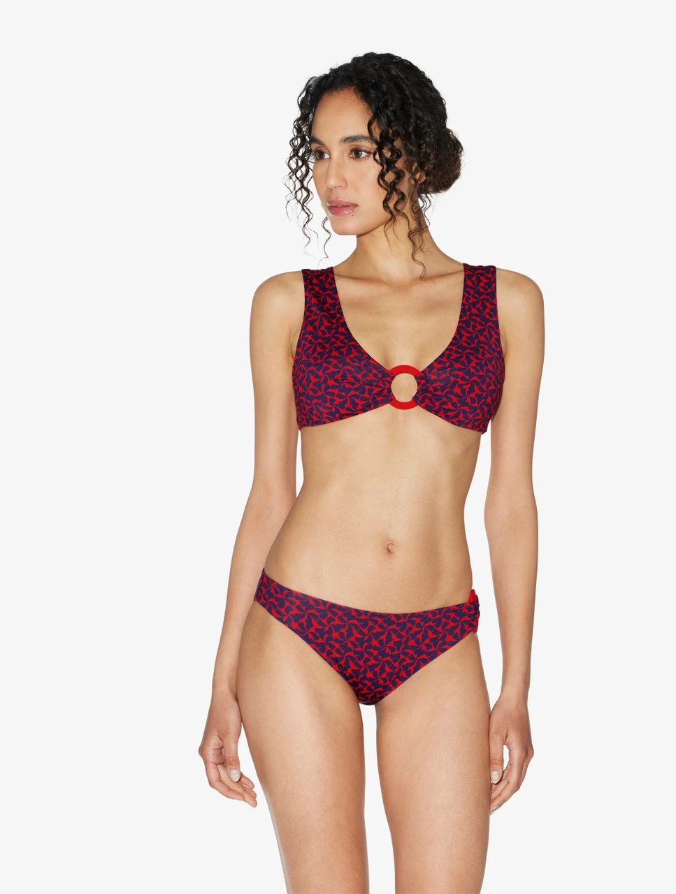 Rencontre parfaite entre une silhouette impeccable et une coupe magnétique, la bralette de bain Summer Winds est ici disponible dans un imprimé raffiné décliné dans des tons de rouge et de bleu. Réinterprétation contemporaine d’un classique indémodable, ce modèle sans armatures est valorisé par un fascinant détail d’anneau et des coussinets amovibles, qui procurent un mélange extraordinaire de confort et d’élégance sublime. Associez-la au bas de maillot de bain taille haute avec ceinture ou au bas de maillot de bain taille basse coordonnés, pour un look de plage irrésistible.