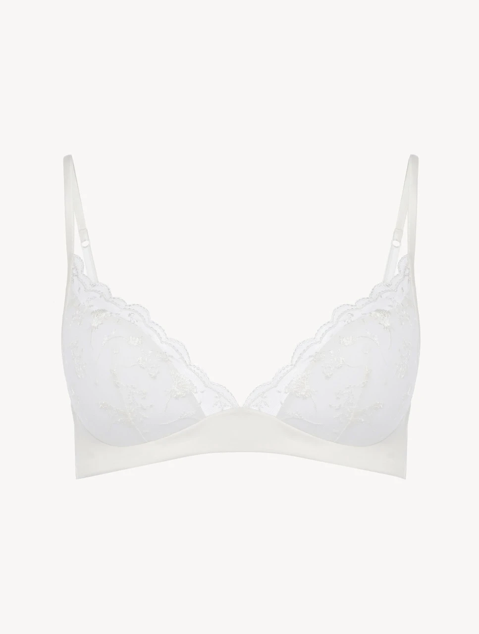 Un mélange puissant de féminité contemporaine et de luxe quotidien caractérise Midnight Botanica, la collection de classiques intemporels faits pour durer une vie, alliant des détails romantiques et des tissus qui suscitent l’envie impérieuse de les toucher. Cette brassière emboîtante extrêmement confortable, ampliforme et sans armatures est réalisée dans un splendide tulle élégamment brodé de fleurs. Portez-la avec un slip, un slip taille haute ou un string assorti, ou sous votre chemise préférée, juste assez déboutonnée pour en révéler un peu la dentelle et composer une tenue à la fois élégante et décontractée le jour comme le soir.