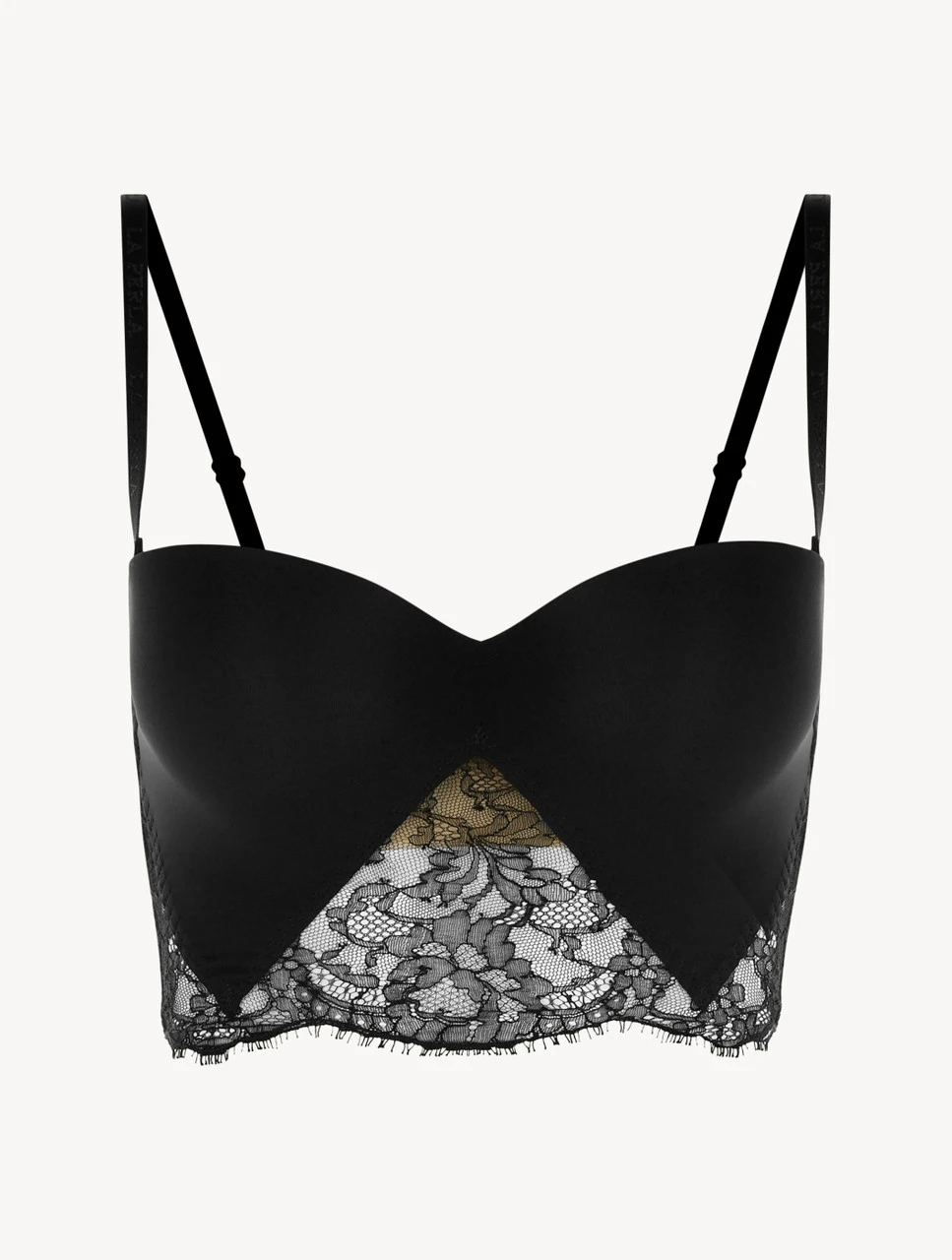 Une gamme parfaite de sous-vêtements pour embellir la silhouette sous les vêtements, avec une touche de romance en plus. Brassière réalisée avec du LYCRA® Beauty, une matière de haute qualité à la texture compacte et au confort impeccable. Une création élégante et résolument féminine grâce à la laize élastique en dentelle chantilly. Une bande en silicone garantit le soutien et l’excellent confort de la pièce, même portée sans bretelles. Bonnets préformés légèrement rembourrés et bretelles amovibles. Fermeture avec crochets au dos.