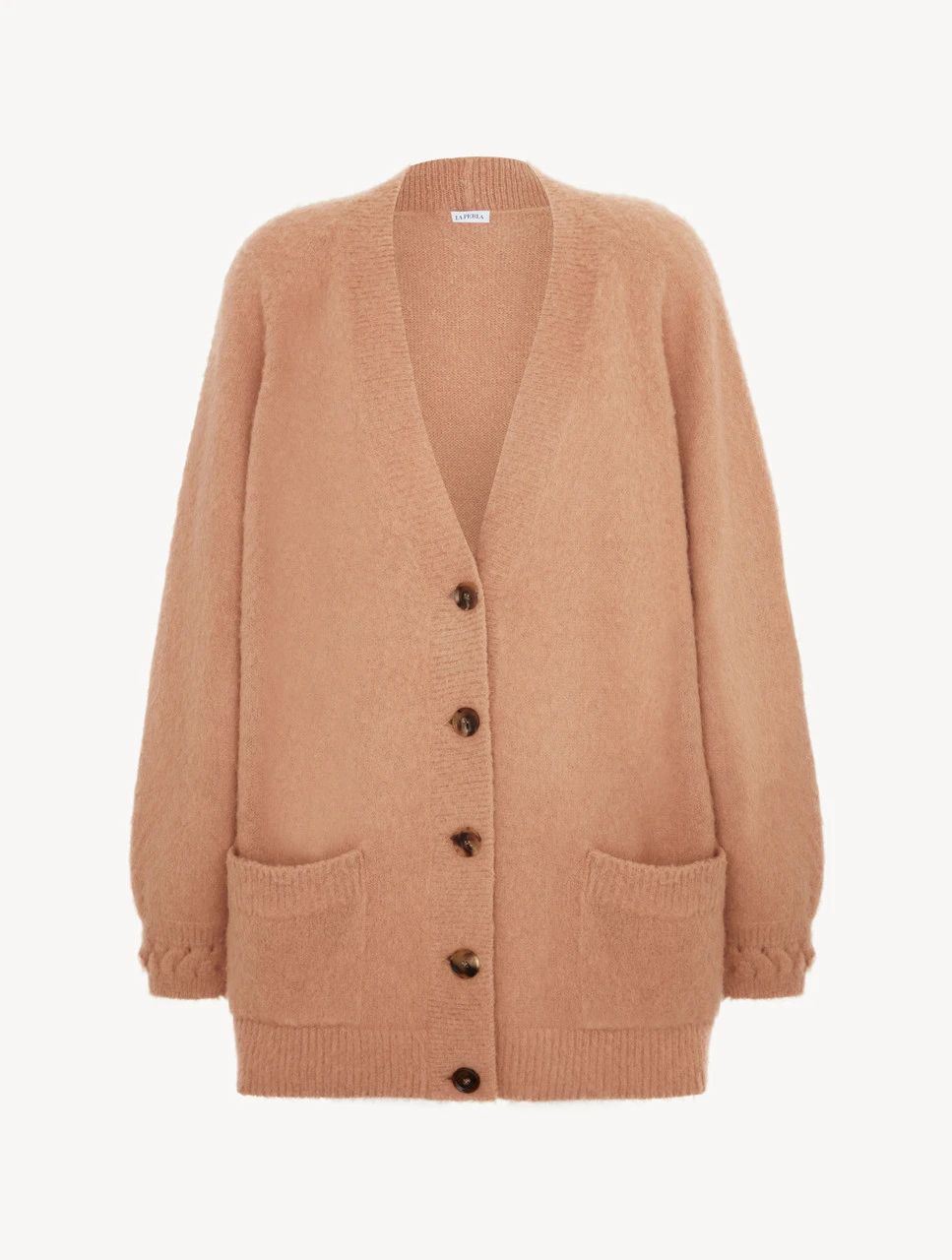 - Cardigan de couleur camel de la collection Fluffy Cocoon