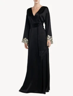 Robe De Chambre Longue En Soie Noire-Lingerie De Nuit En Soie-SILK