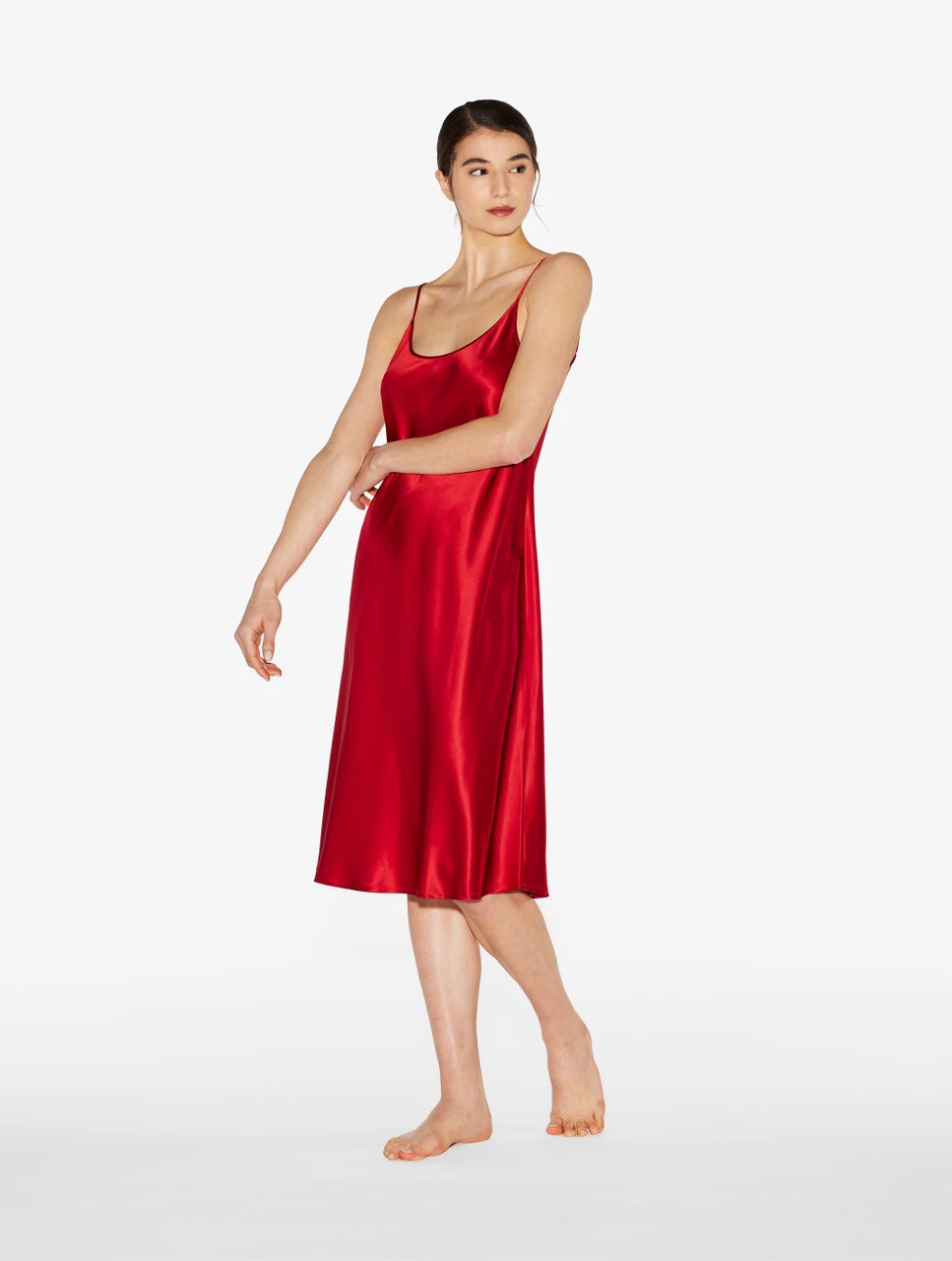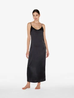 Cette collection de tenues de nuit en pur satin de soie d’une grande sobriété possède un charme inouï. Gage de confort la nuit, ces caressantes créations sont idéales aussi le jour, pour le plaisir de se lover dans le luxe. Cette chemise de nuit midi à la coupe droite présente une ligne décontractée valorisant les formes et des bretelles réglables qui garantissent un tombé parfait.