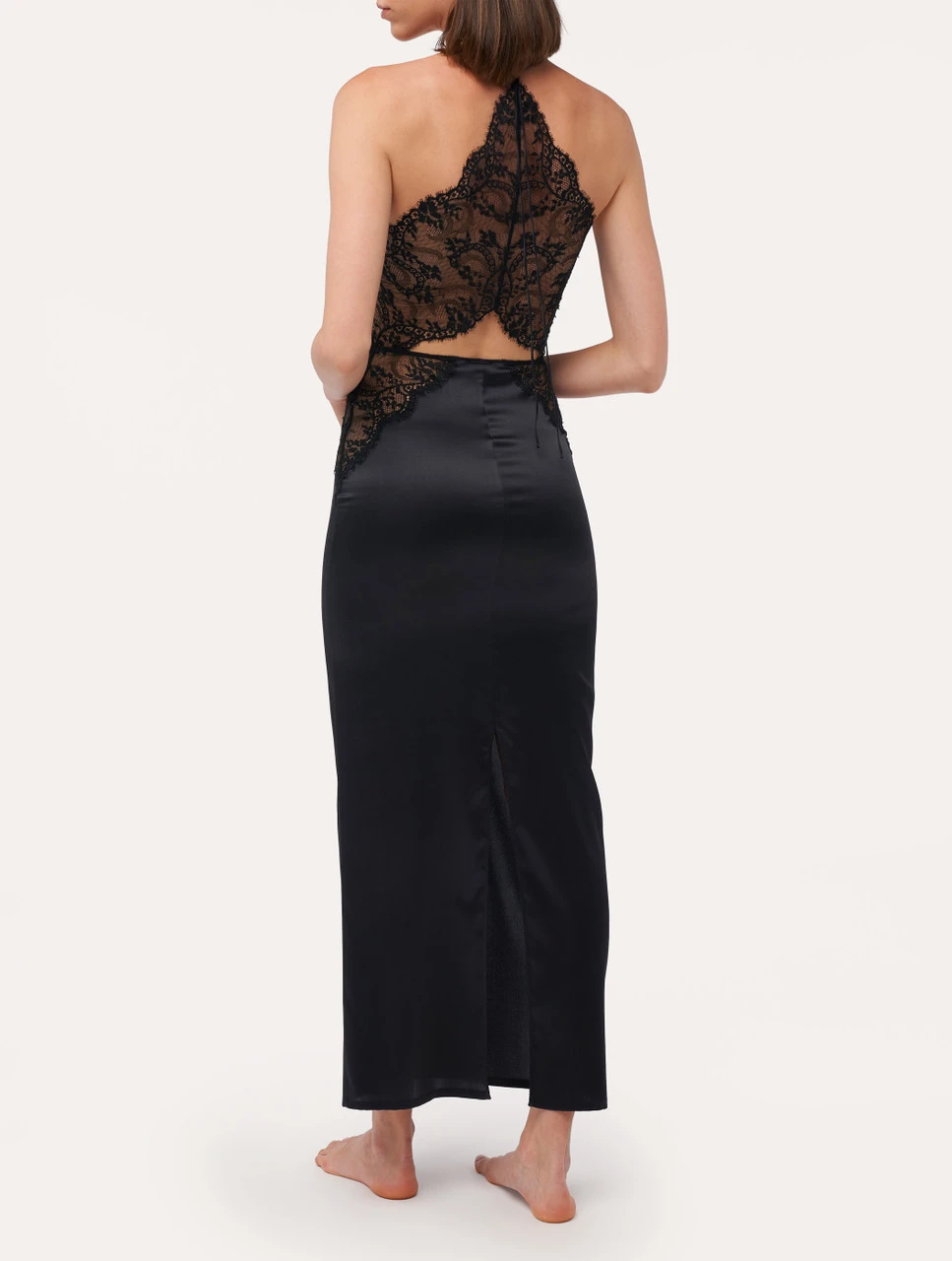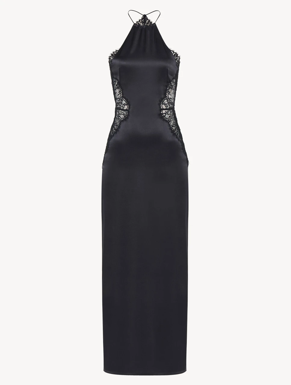 Créée pour être aussi élégante qu’une tenue de soirée, cette chemise de nuit en satin de soie épouse les lignes du corps avec sensualité tout en offrant une extraordinaire sensation de confort et de douceur. Les motifs floraux des insertions en dentelle Leavers serpentent sur la peau, tandis que la fente plongeante du dos apporte sa touche finale de séduction.