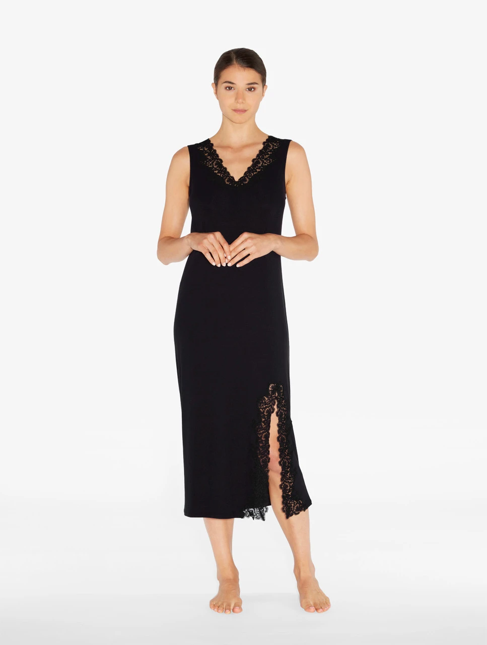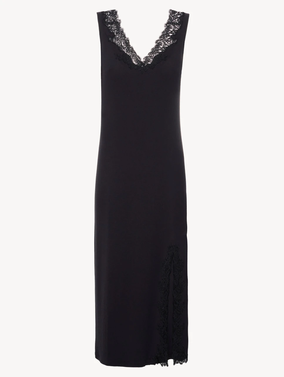 Laissez-vous séduire par Angel Kiss, une collection au charme envoûtant composée de pièces essentielles à la douceur irrésistible pour des moments de détente encore plus réparateurs, jour et nuit. Réalisée en luxueux cachemire mélangé dont la douceur cajole la peau, cette chemise de nuit longue côtelée présente une ligne sans manches qui valorise la silhouette, ainsi qu’une fente latérale et une encolure en V devant et dos magnifiquement rehaussées par une guipure « frastaglio ».