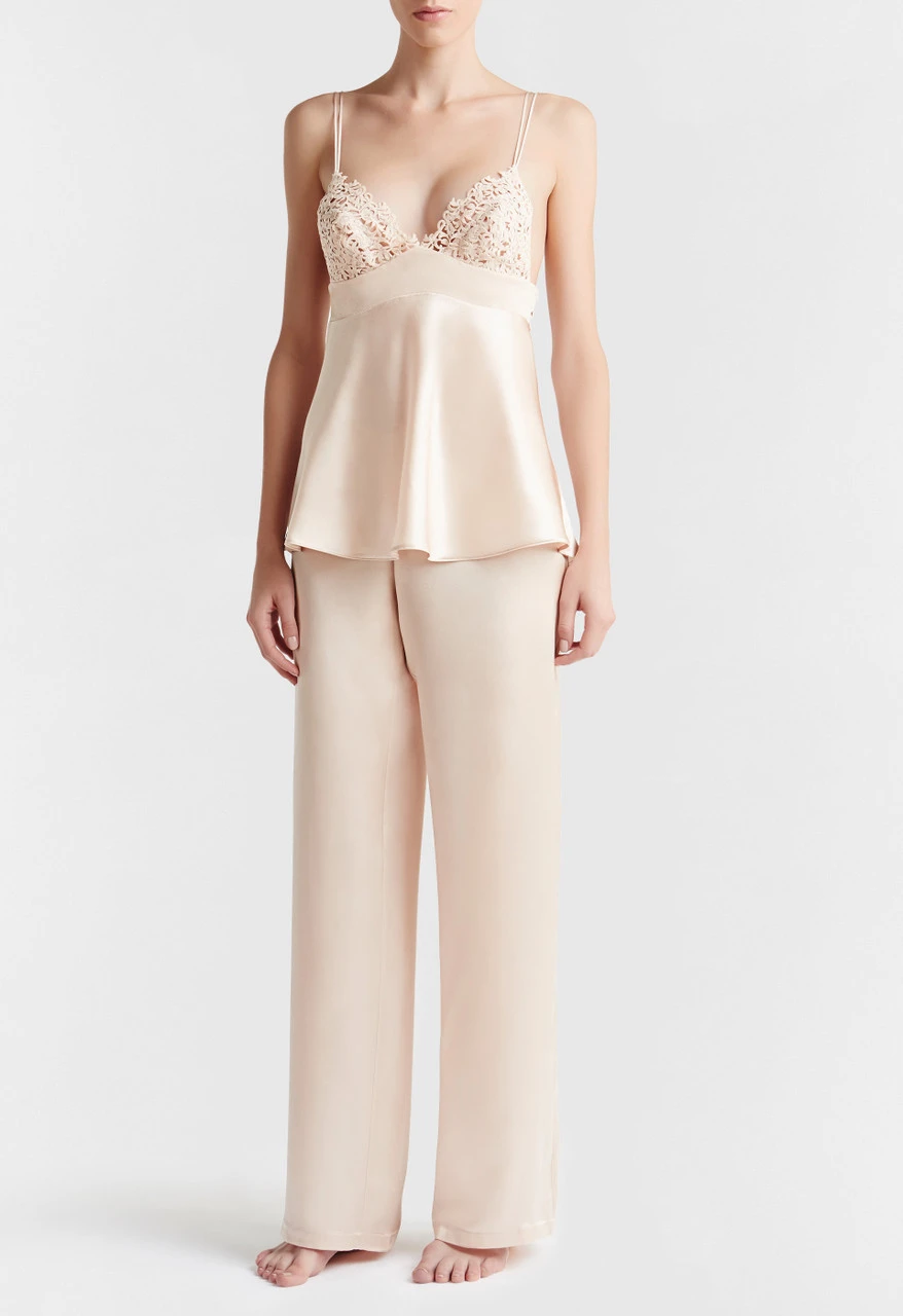 Débardeur Blanc En Soie Avec Dentelle Leavers-Lingerie De Nuit En Soie-PER LEI