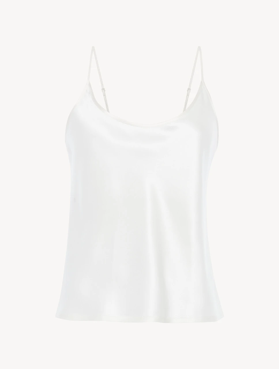Débardeur Blanc En Soie Avec Dentelle Leavers-Lingerie De Nuit En Soie-PER LEI