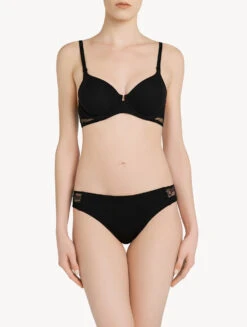 Culotte En Soie Noire Avec Frastaglio En Macramé-Lingerie De Nuit En Soie-PETIT MACRAME