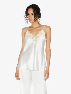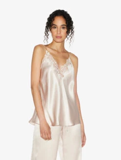 Débardeur Beige Rosé En Soie Avec Macramé-Lingerie De Nuit En Soie-PETIT MACRAME