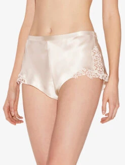 Culotte En Soie Beige Rosé Avec Frastaglio En Macramé-Lingerie De Nuit En Soie-PETIT MACRAME