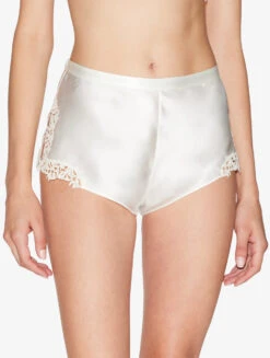 Culotte En Soie Blanc Avec Frastaglio En Macramé-Lingerie De Nuit En Soie-PETIT MACRAME