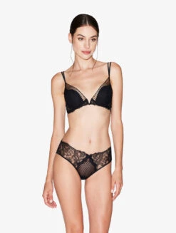Soutien-gorge Push-up Ampliforme Noir Avec Finitions En Dentelle Leavers-Rembourré-EXOTIQUE