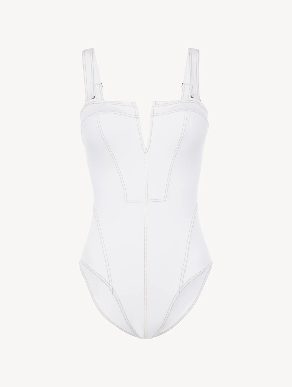 Associant des lignes impeccables et sophistiquées à des détails d’inspiration sportive, la collection When Summer Comes est conçue pour offrir un confort luxueux et sublimer votre silhouette afin que vous vous sentiez confiante à la plage comme à la piscine. Réalisée dans un superbe Lycra® stretch, ce maillot de bain une pièce de couleur blanche sans armatures présente une coupe qui valorise la silhouette. Doté de coussinets amovibles, il est caractérisé par un décolleté en V à bord carré, des surpiqûres sculptantes de couleur contrastée et des bretelles bicolores réglables.