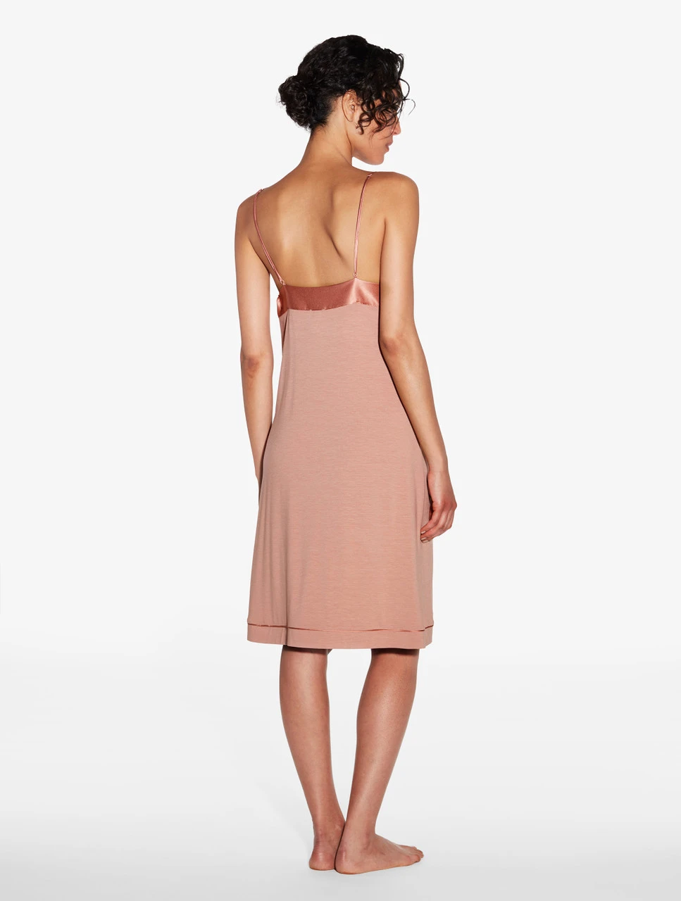 Un mélange puissant de féminité contemporaine et de luxe quotidien caractérise Midnight Botanica, la collection de classiques intemporels faits pour durer une vie, alliant des détails romantiques et des tissus qui suscitent l’envie impérieuse de les toucher. Expression même d’un confort inégalé, cette nuisette courte réalisée dans un doux jersey issu de viscose durable est magnifiquement rehaussée d’un passepoil en satin de soie et de fines bretelles. Portez-la sous la robe de chambre courte coordonnée.