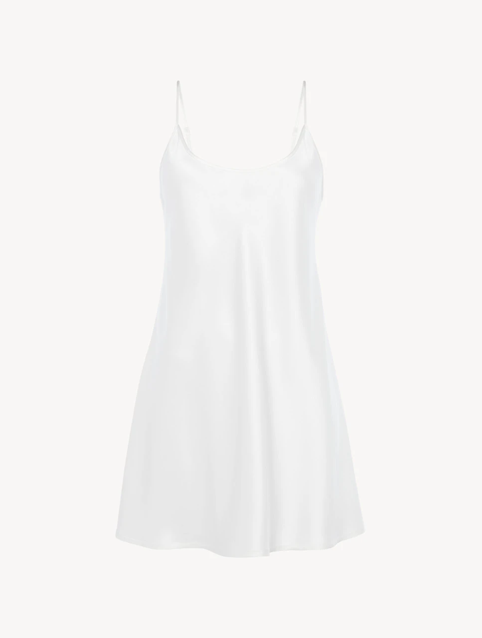 Nuisette au style simple et à la coupe fluide caressant délicatement les hanches, avec tout le confort des bretelles réglables. Exceptionnellement confortable et polyvalente, elle peut se porter comme chemise de nuit ou comme combinaison discrète sous les vêtements, voire sous une robe de cocktail transparente.