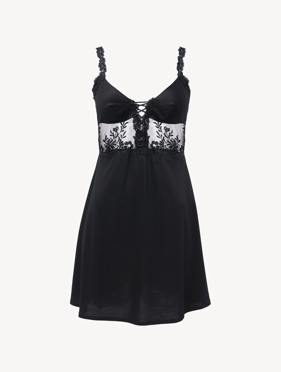 - Nuisette courte en modal stretch avec tulle brodé transparent