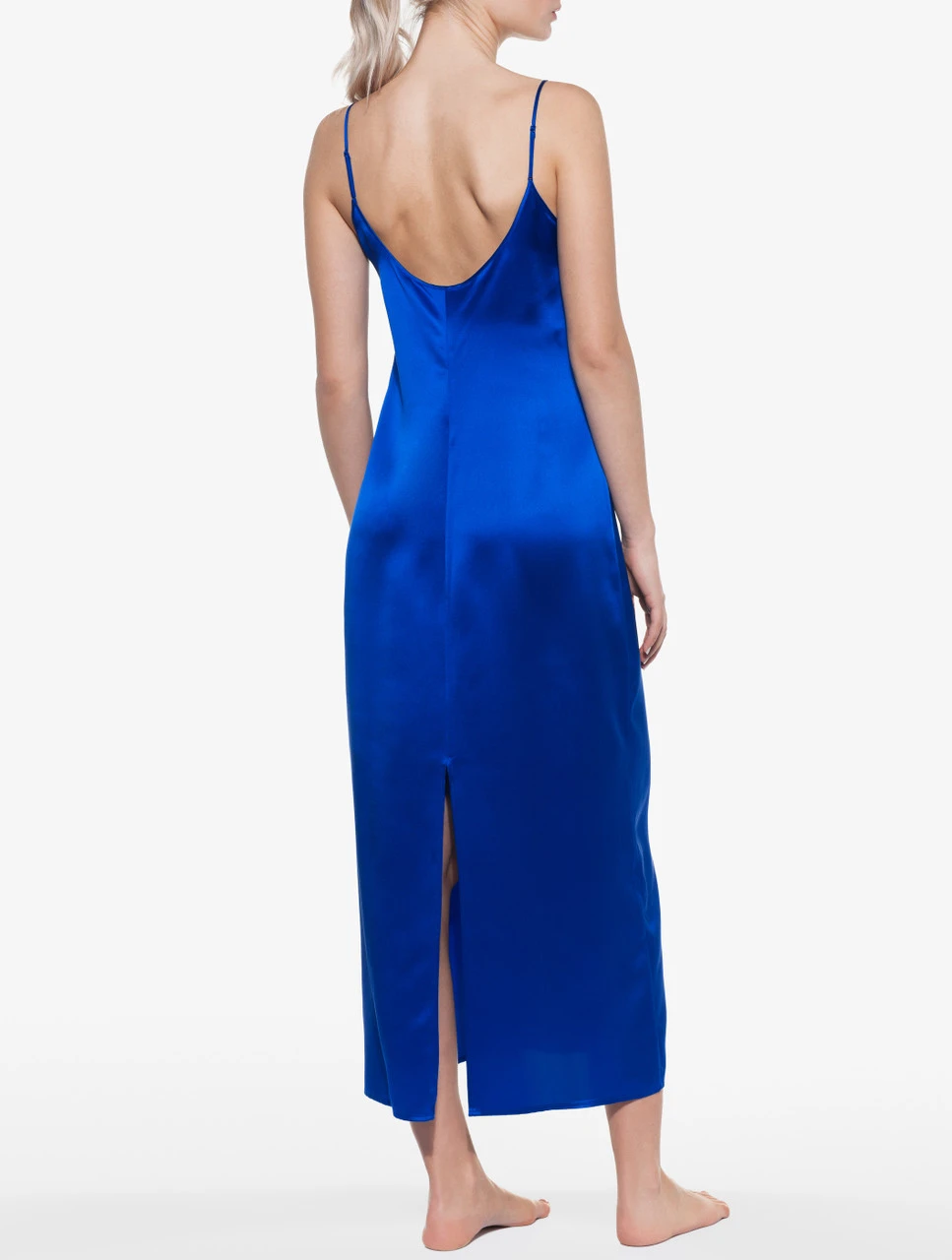 Cette collection de tenues de nuit en pur satin de soie d’une grande sobriété possède un charme inouï. Gage de confort la nuit, ces caressantes créations sont idéales aussi le jour, pour le plaisir de se lover dans le luxe. Cette slip dress longue à la coupe droite présente une ligne valorisant les formes et un tombé décontracté. Dans le dos, une longue fente ajoute une touche de troublante sensualité. Ses bretelles réglables garantissent un tombé toujours parfait.