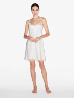 Slip Dress Blanche En Soie Avec Dentelle Leavers-Lingerie De Nuit En Soie-PER LEI