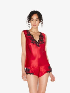 Top En Satin De Soie Rouge Avec Broderie En Guipure «frastaglio»-Lingerie De Nuit En Soie-MAISON