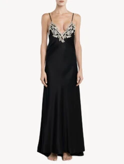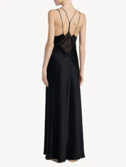 Chemise De Nuit Longue Noire-Lingerie De Nuit En Soie-PETIT MACRAME