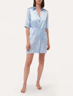 Chemise De Nuit Longue En Soie Bleu Clair-Lingerie De Nuit En Soie-SILK