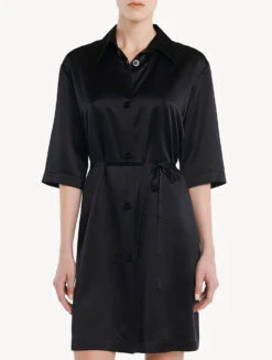 Chemise De Nuit Longue En Soie Noire-Lingerie De Nuit En Soie-SILK