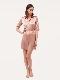 Chemise De Nuit Longue En Soie Rose-Lingerie De Nuit En Soie-SILK