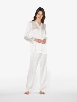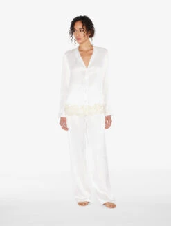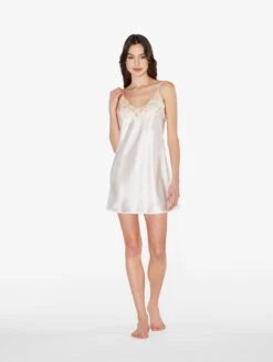 Nuisette En Satin De Soie De Couleur Blanc-Lingerie De Nuit En Soie-MAISON