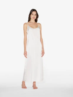 Nuisette Longue En Soie Blanche-Lingerie De Nuit En Soie-SILK