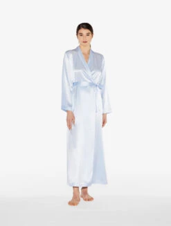 Robe Chambre Longue En Soie Bleu Clair-Lingerie De Nuit En Soie-SILK