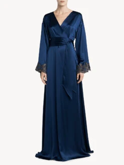 Robe De Chambre Longue Noir En Soie Avec Ceinture-Lingerie De Nuit En Soie-EXOTIQUE