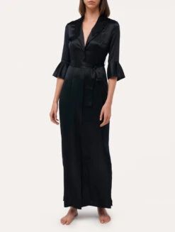 Robe De Chambre Longue En Soie Noire-Lingerie De Nuit En Soie-SILK