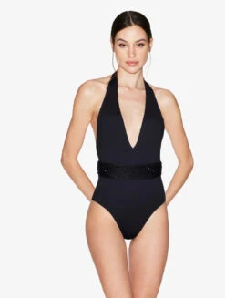Maillot De Bain Une Pièce Avec Ceinture Vert Foncé Et Noir-Maillots De Bain-SUMMER WINDS