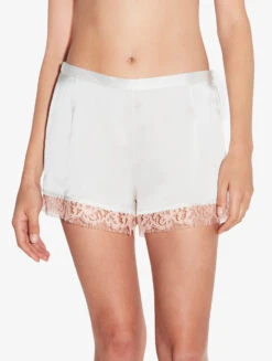 Short Blanc En Soie Avec Dentelle Leavers-Lingerie De Nuit En Soie-PER LEI