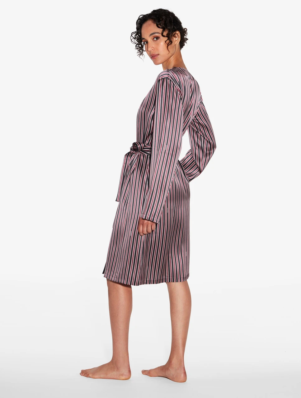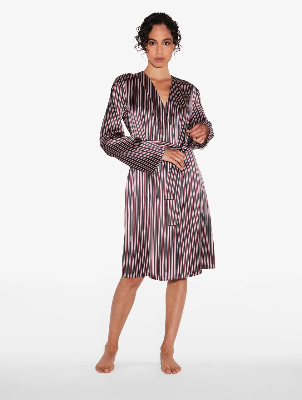 Choix d’excellence pour vos moments de détente, notre robe de chambre courte en soie incarne une élégance intemporelle. Disponible dans un magnifique imprimé à rayures, cette pièce à la coupe enveloppante et à la finition agréable au toucher offre un équilibre idéal entre confort et somptuosité. Résultat ? Une création exceptionnelle imaginée pour être jalousement conservée toute une vie durant. Associez-la au pyjama long ou au débardeur et au short de pyjama assortis pour afficher, tous les soirs, une élégance incomparable.