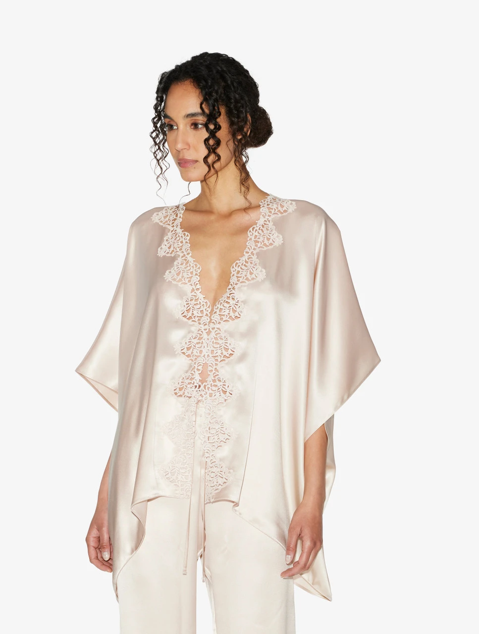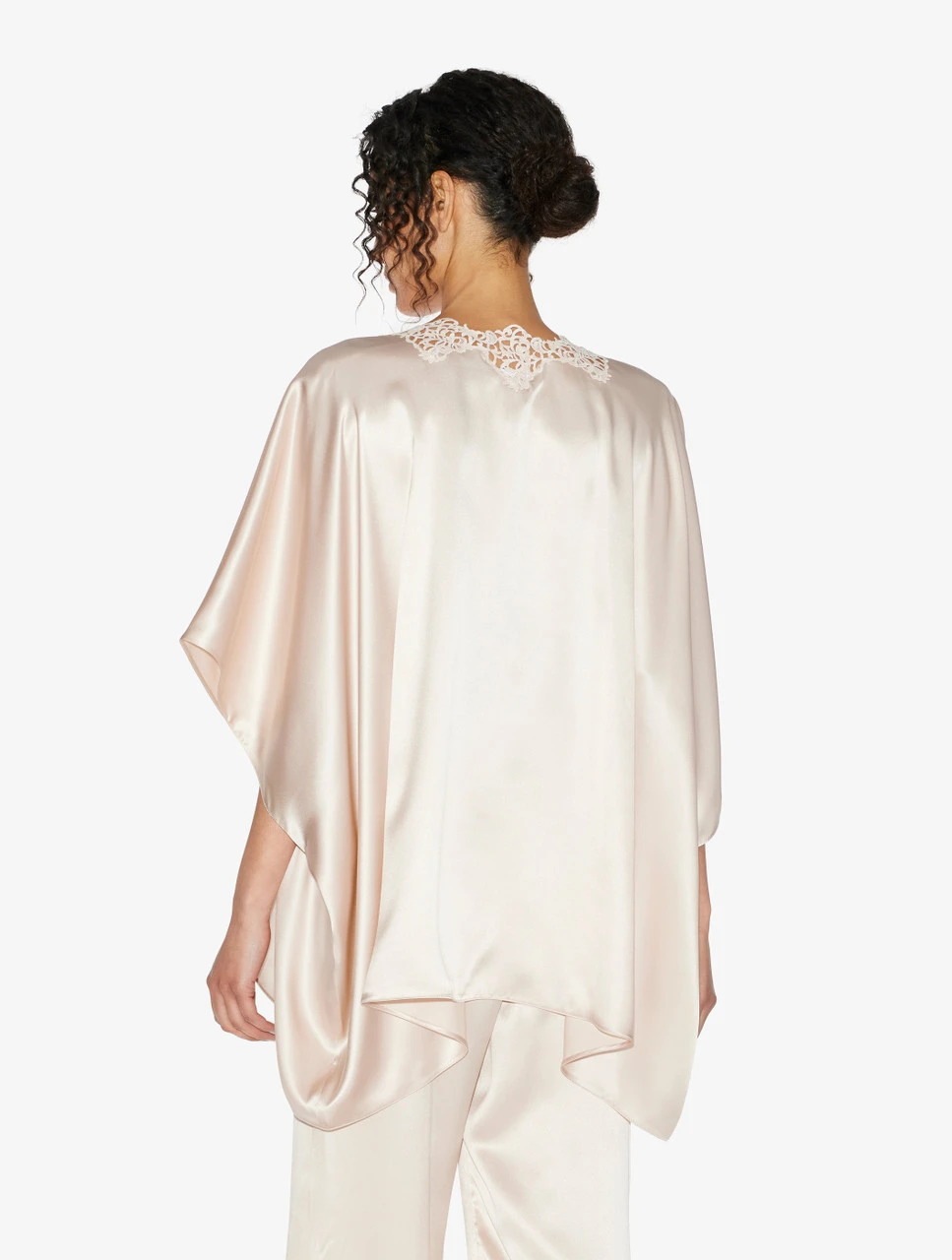 Chemise De Nuit Longue Beige Rosé-Lingerie De Nuit En Soie-PETIT MACRAME
