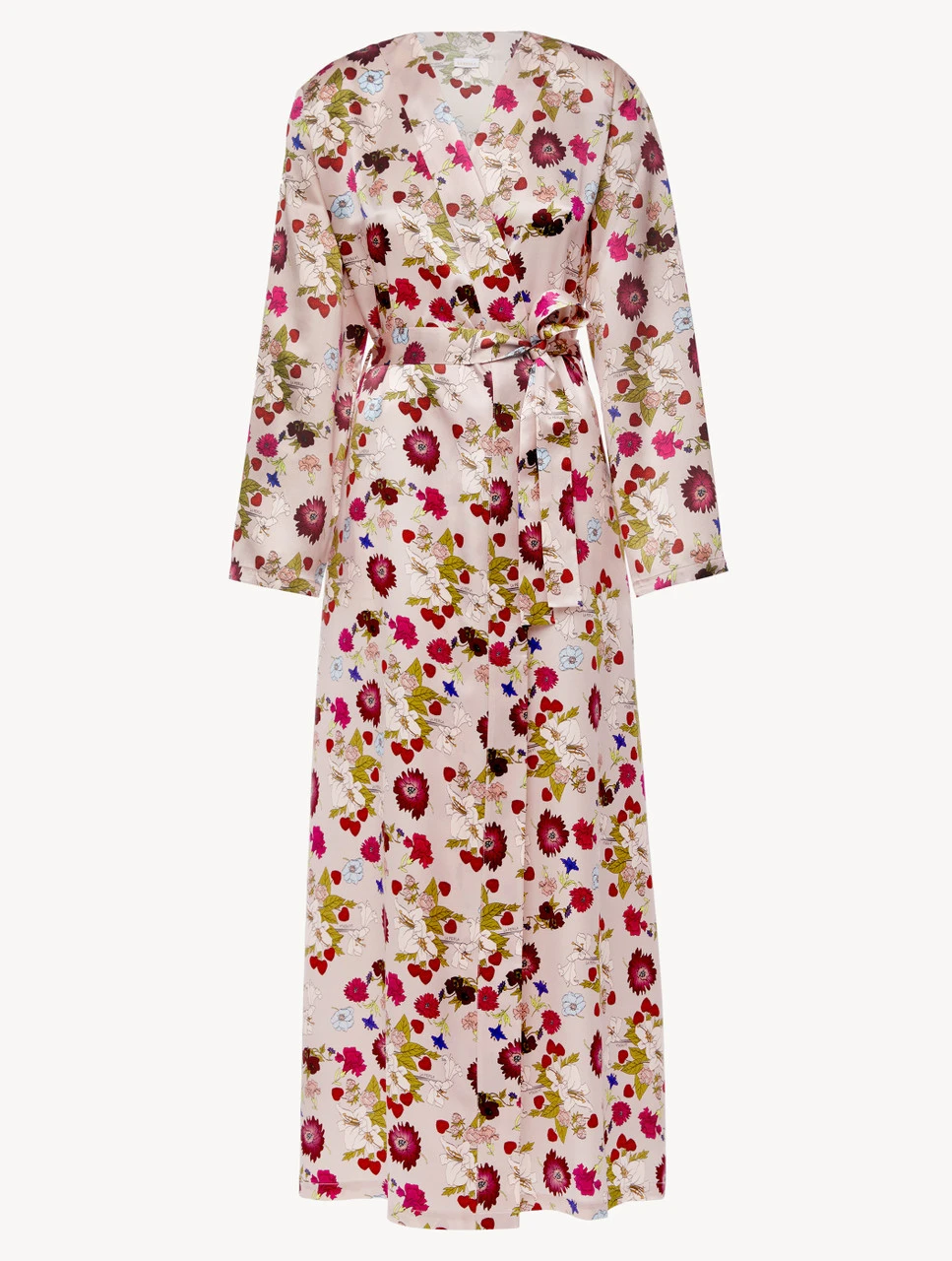 - Robe de chambre longue en soie avec imprimé floral