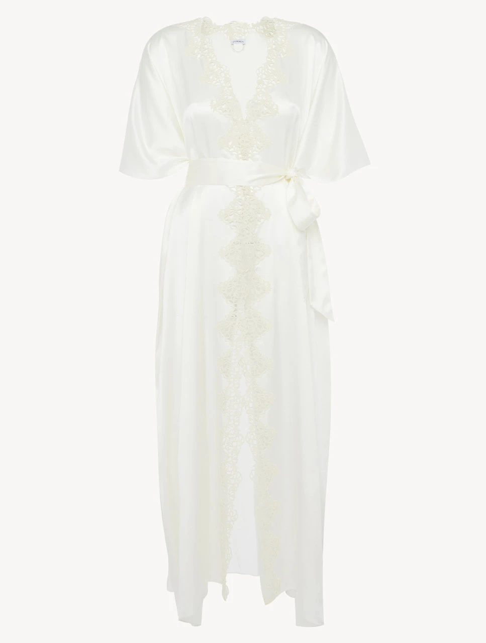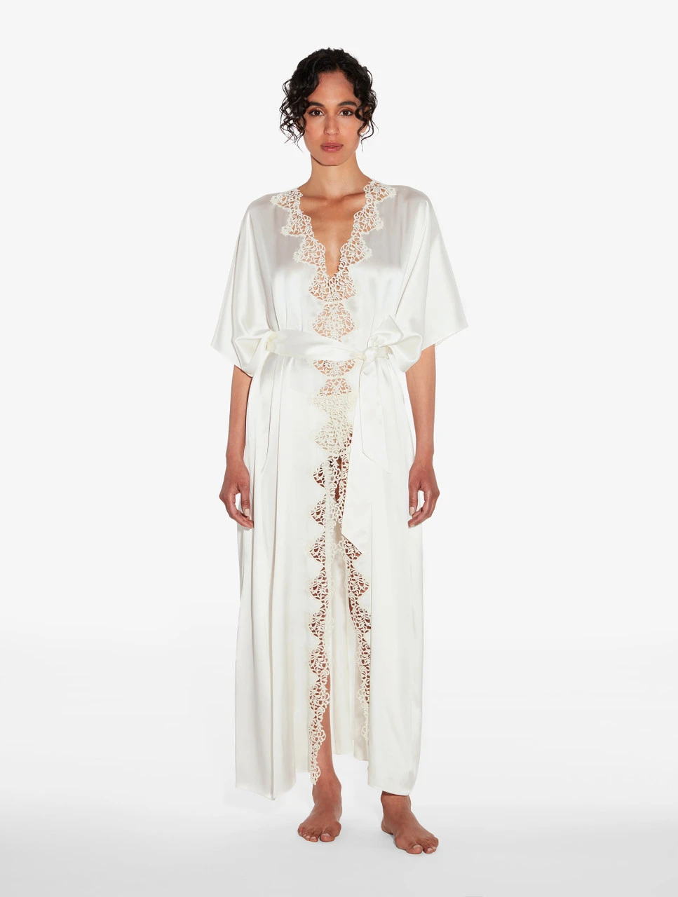 Une silhouette décontractée et élégante qui allie confort et sophistication pour notre robe de chambre en soie Petit Macramé. Soigneusement réalisée dans un satin de soie fluide, elle est magnifiquement finie à la main avec de délicats effets de spirale.