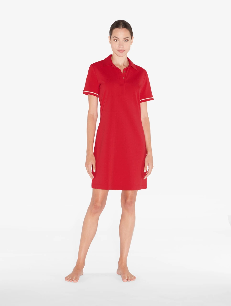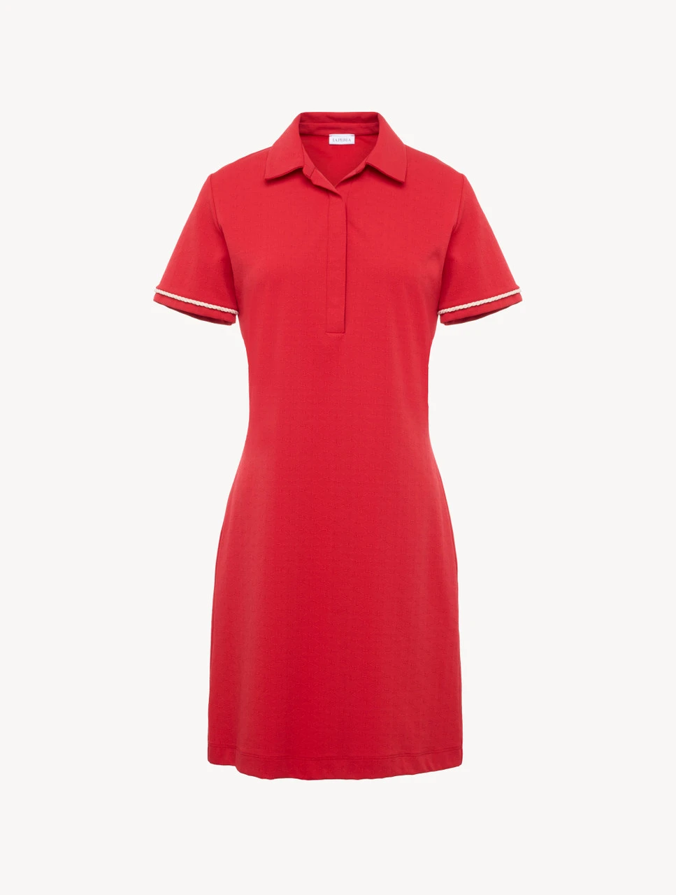 Mêlant élégance, sophistication et esprit nautique contemporain, la robe polo rouge La Perla Signature est rehaussée de l’emblématique monogramme LP en jacquard stretch de couleur assortie. Sa coupe chic, décontractée et moderne est rehaussée d’un cordonnet de couleur contrastée au niveau des manches qui lui donne un indémodable style resort. Portez-la comme tenue de plage sur les maillots de bain coordonnés ou avec des sandales ou encore des talons hauts pour composer un look polyvalent de jour comme de soir.