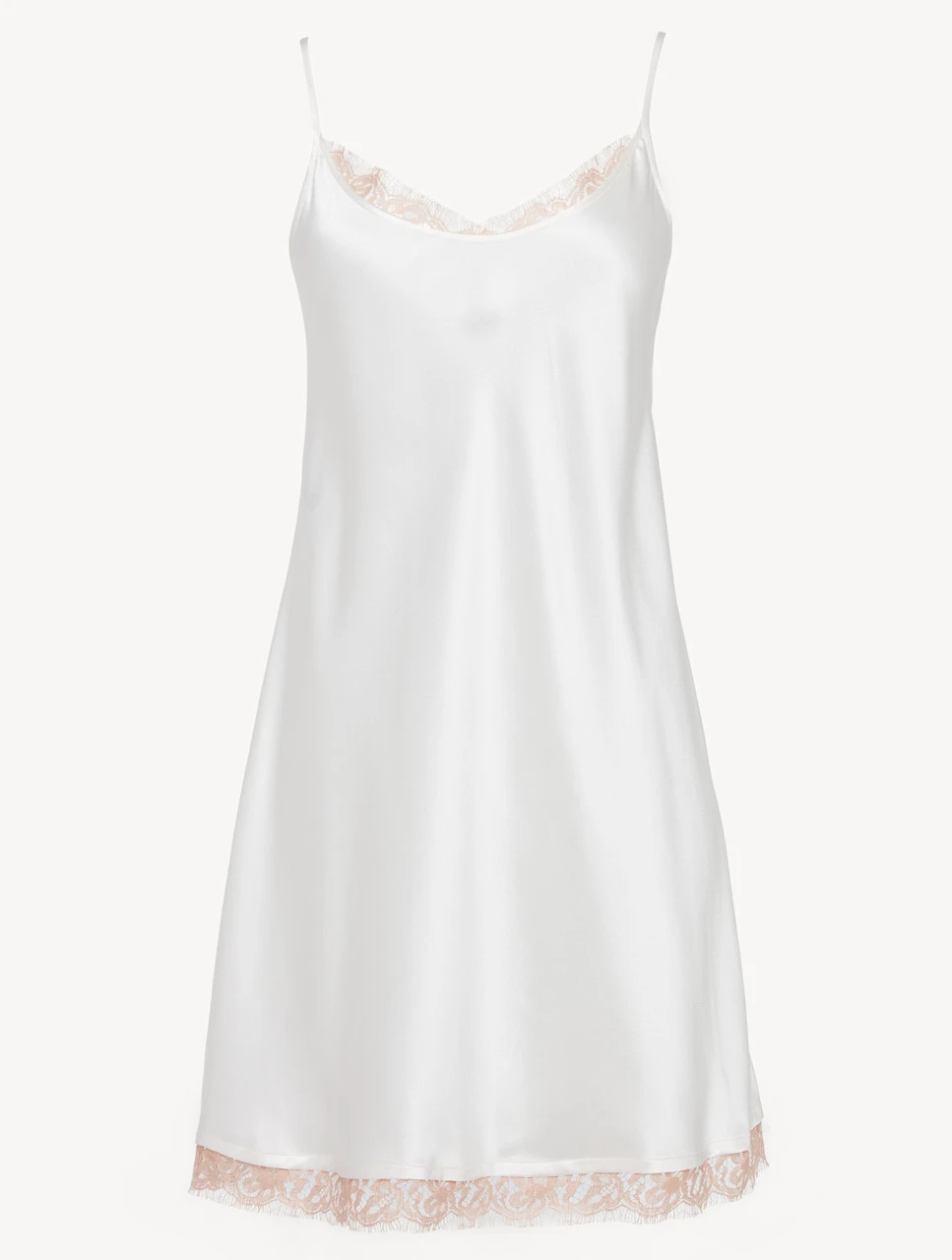 Short Blanc En Soie Avec Dentelle Leavers-Lingerie De Nuit En Soie-PER LEI