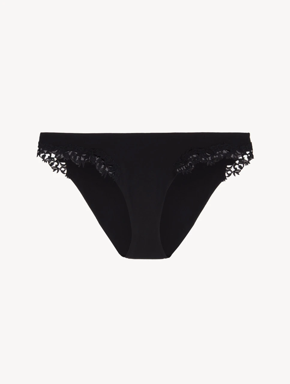 Ce slip taille basse est fini avec l’une des méthodes artisanales les plus distinctives de La Perla, le macramé, utilisant l’art de l’applique frastaglio. Le slip est en Lycra® ultraléger offrant un fitting parfait sur la peau et doublé en coton.