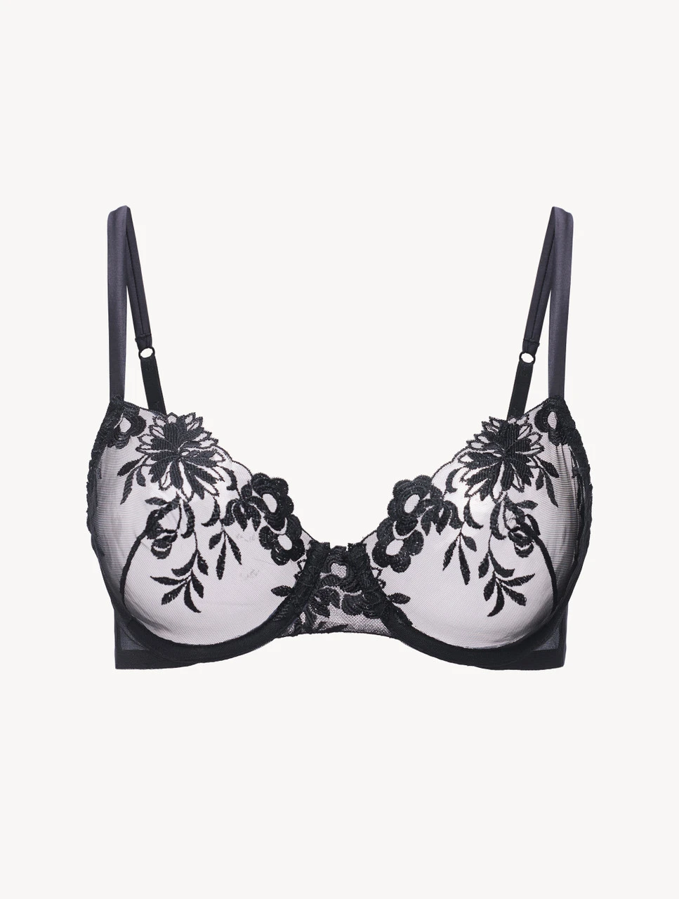 La collection «Zephyr» met en lumière la maîtrise des artisans La Perla en réinterprétant la tradition avec modernité. Une profusion de broderies florales et d’insertions transparentes apportent une touche précieuse aux modèles contemporains en Lycra®. Réalisé dans une précieux tulle, ce soutien-gorge est orné d’un délicat motif de fleurs. Ses armatures apportent un excellent soutien et ses bonnets souples sans coussinets allient confort et sensualité.