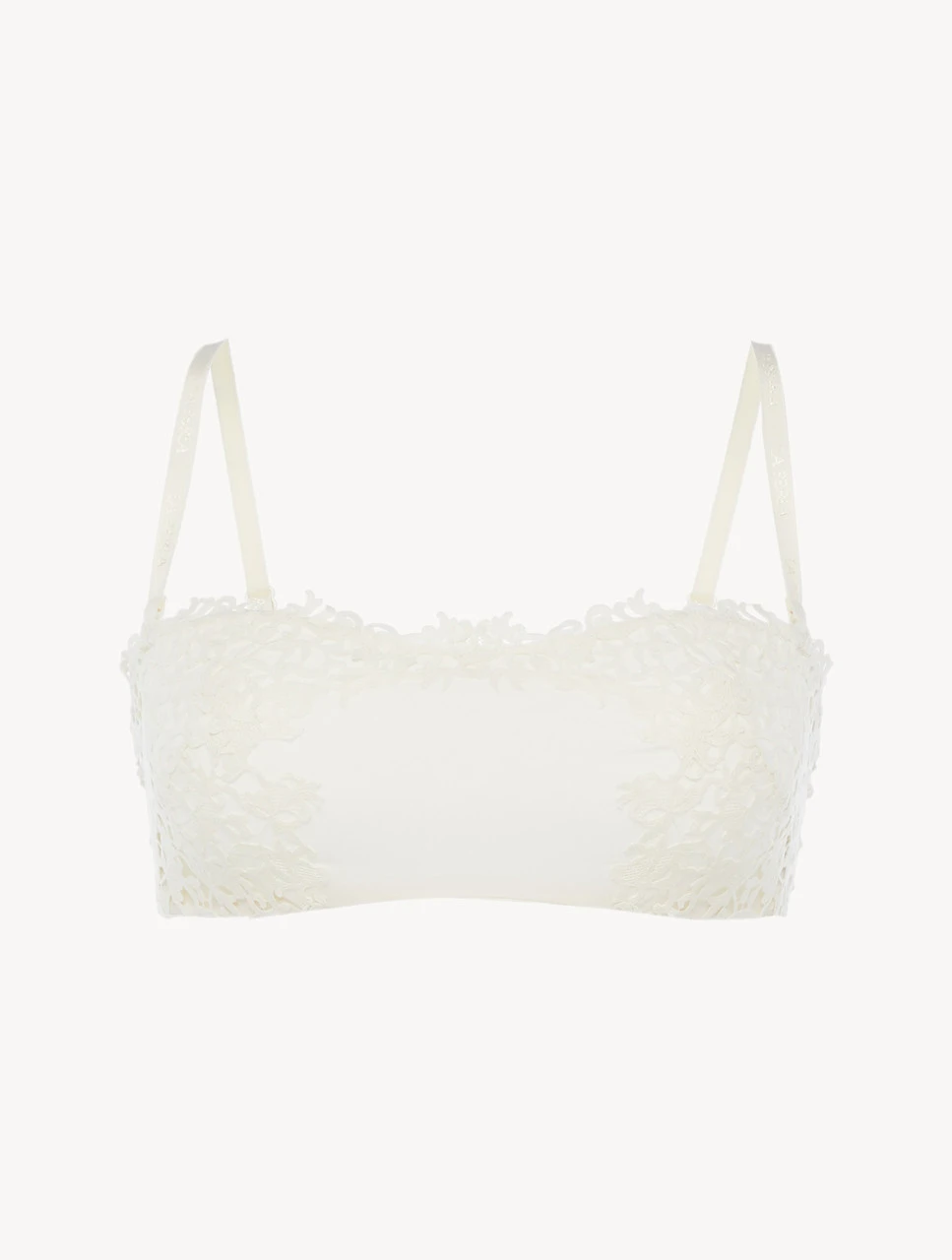 Splendidement rehaussé de macramé aux motifs complexes appliqué selon la technique de guipure florentine « frastaglio », ce magnifique soutien-gorge sans armatures met en avant le savoir-faire artisanal de la Maison La Perla. Les bretelles ajustables et amovibles en font un modèle idéal à porter sous de nombreux types d’encolures différents, tandis que les coussinets amovibles définissent discrètement le décolleté.