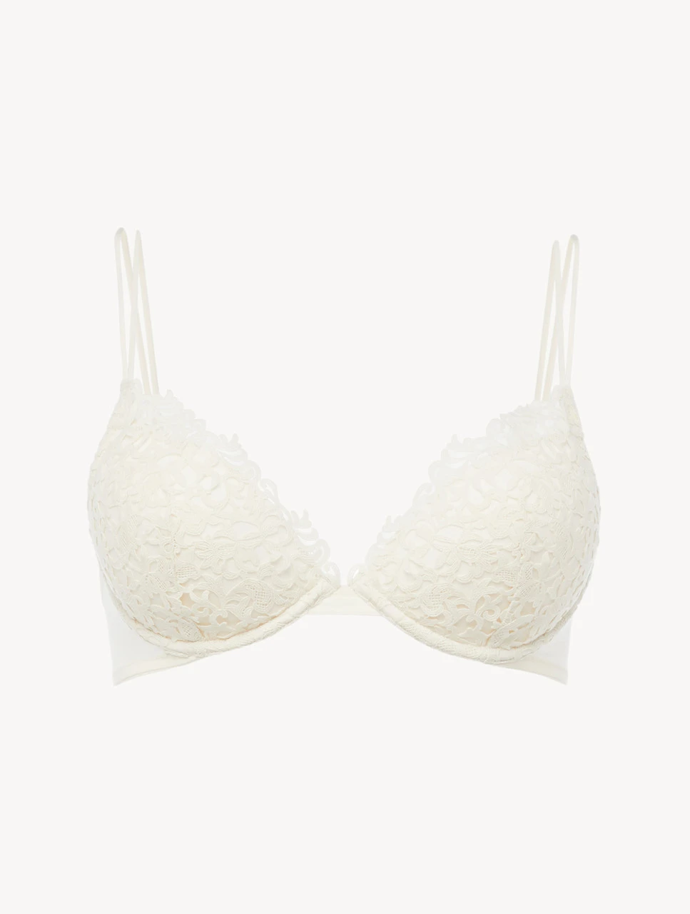 La précieuse finition en macramé recouvre les bonnets du soutien-gorge push-up et encadre le décolleté. Made in Italy.