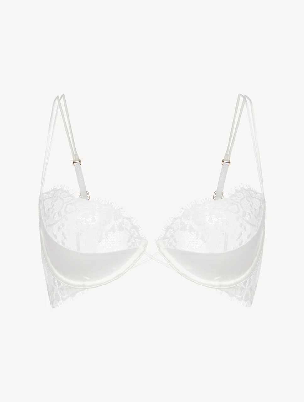 Élégante alliance entre sensualité et confort, ce soutien-gorge corbeille est réalisé avec de douces insertions en soie et dentelle Leavers transparente qui créent un séduisant effet diaphane. Le magnifique motif floral de la dentelle serpente sur la peau, créant un extraordinaire effet de séduction, avant de terminer en un délicat bord festonné. Les bonnets avec armatures offrent le maximum de soutien.