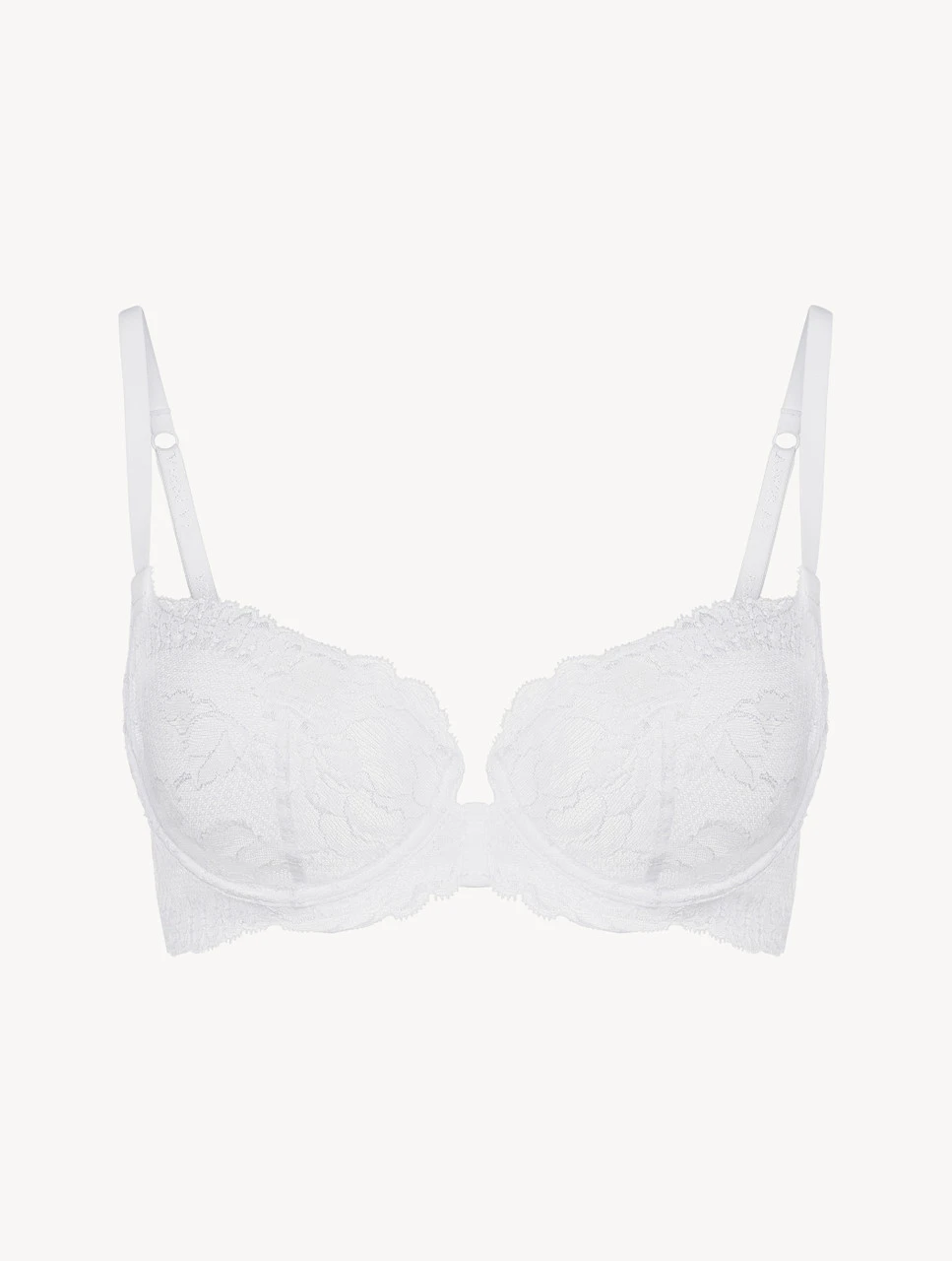 Expressément conçu pour valoriser les formes naturelles, ce soutien-gorge corbeille à armatures en dentelle Leavers stretch garantit un maintien supérieur et rehausse le décolleté. Parfait même sous les hauts les plus décolletés.